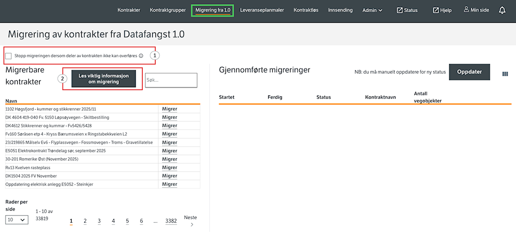 - Du kan kun migrere kontrakter som du er "Ansvarlig" på i Datafangst 1.0.