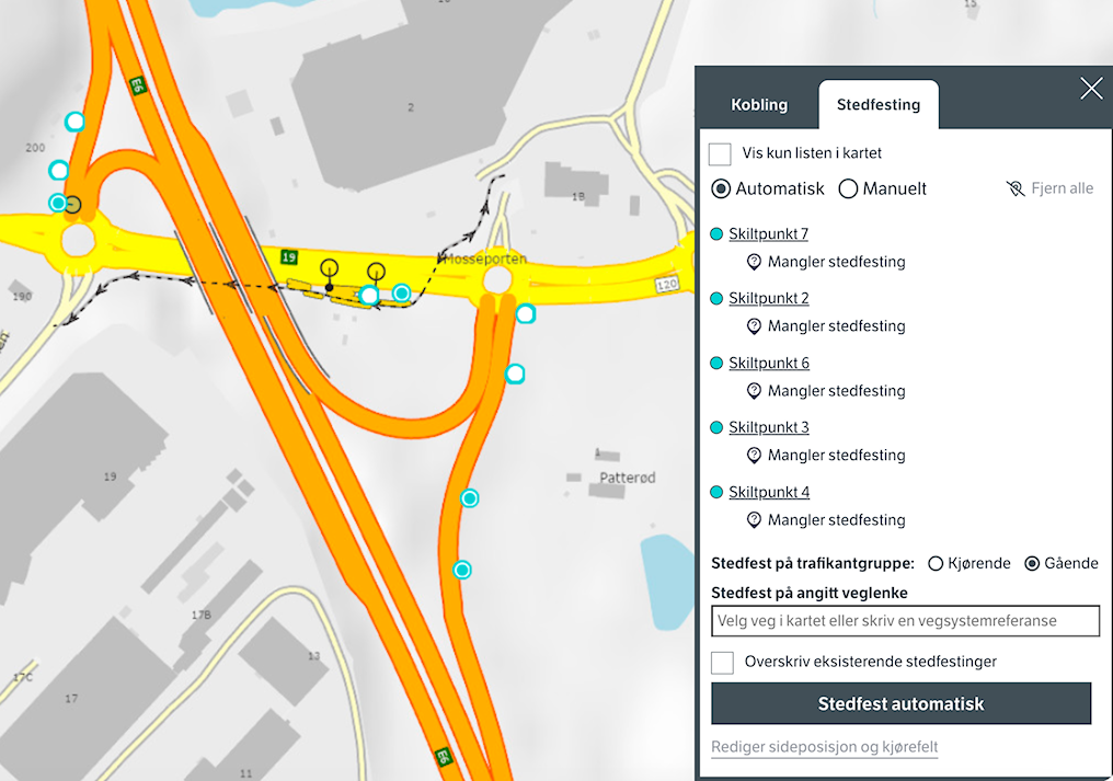 (8) Når objektene har fått stedfesting, vil det være mulig å redigere sideposisjon og kjørefelt ved behov.