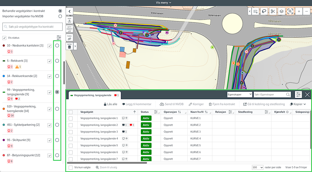 Rediger informasjon om vegobjektene, og send til NVDB.