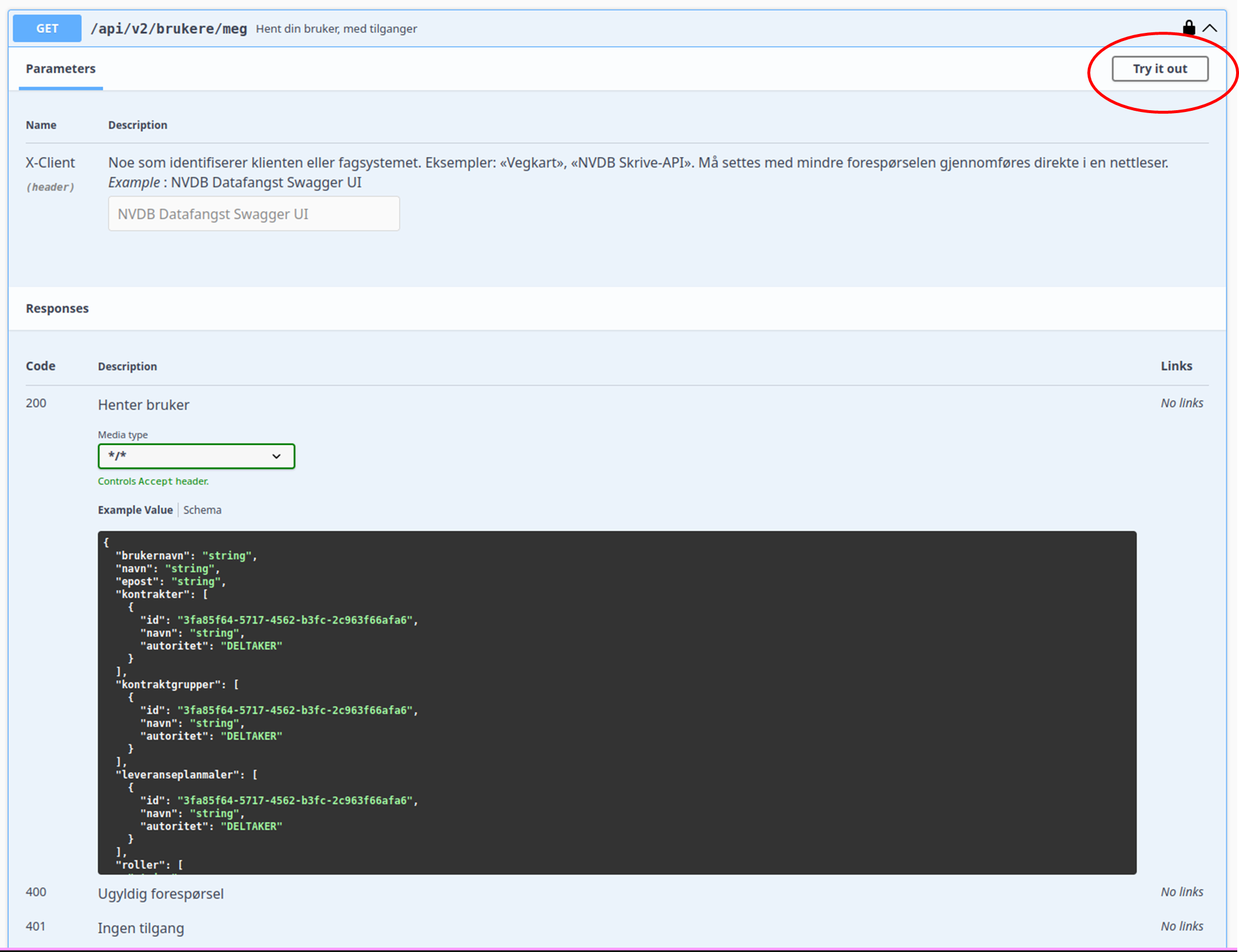 Finn følgende endepunkt og trykk på «Try it out»